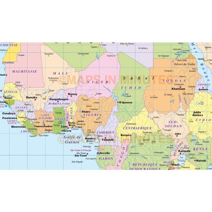 Digital Vector World Map Carte Francaise Du Monde Politique World Map In French Gall Projection Uk Centric Large Scale Royalty Free